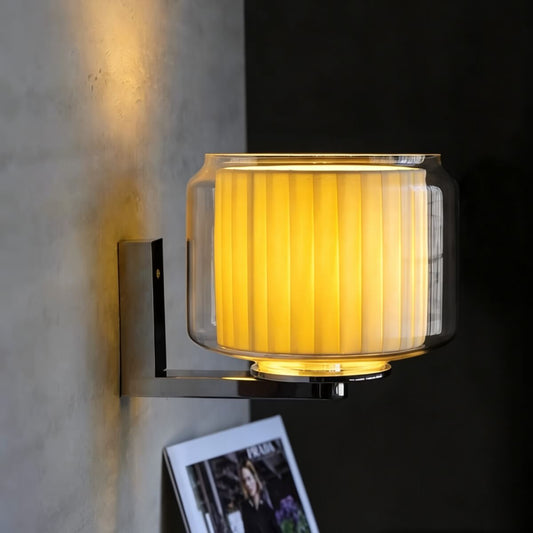 Bauhaus Modern Double Shade Glass and Fabric Wall Sconce