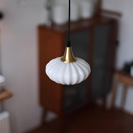 Retro Modern Mini Brass and Ribbed Glass Pendant Light