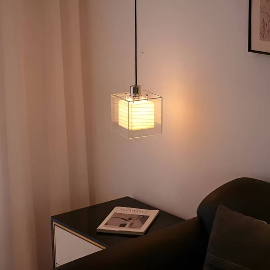 Bauhaus Cube Clear Glass Pendant Light for Living Room