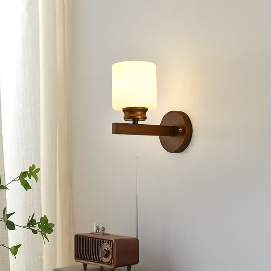 Ancient Style Cylindrical Auburn Glass Wall Light