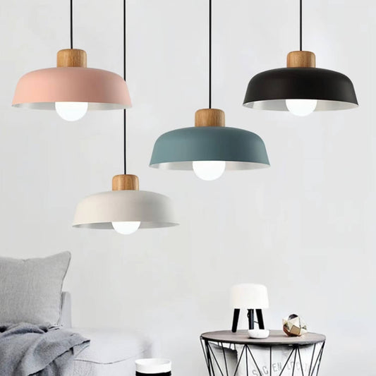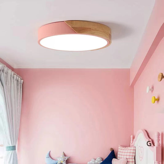 Scandinavian Macaron Drum Wooden Ceiling Light