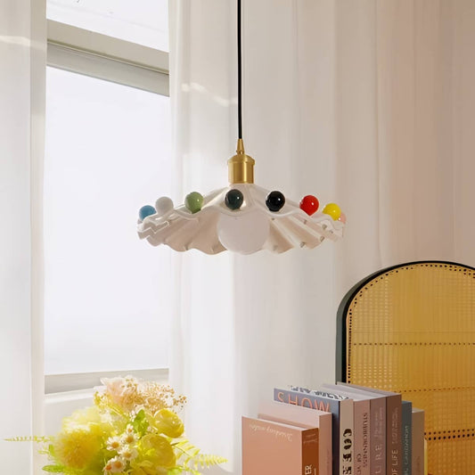 Memphis Ceramic White Pendant Light With Colorful Bean