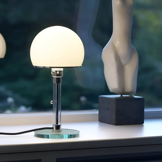 Bauhaus Industrial Hemispherical White Glass Table Lamp