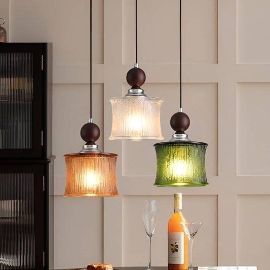 Vintage Cylindrical Ribbed Glass Pendant Light