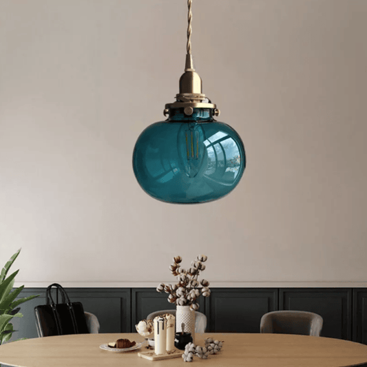 Bauhaus Vintage Round Glass Pendant Light over Dining Table