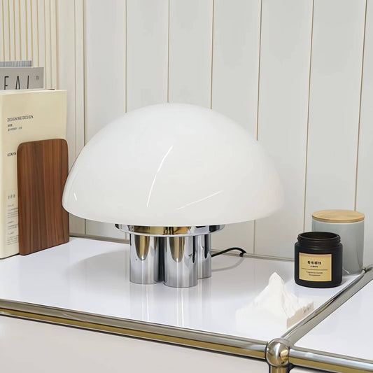 Bauhaus Industrial Hemispherical White Glass Table Lamp