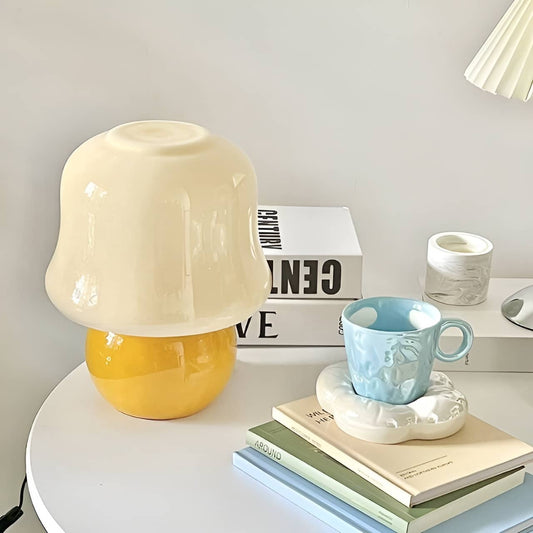 Nordic Creamy Yellow Mushroom Bedside Lamp
