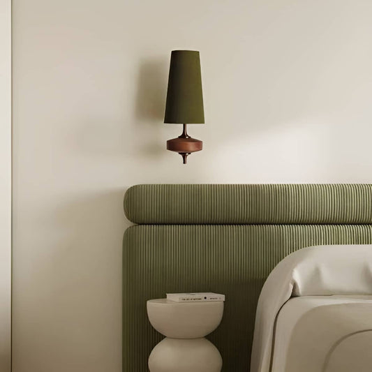 Mid Century Antique Wall Sconce with Wood and Fabric