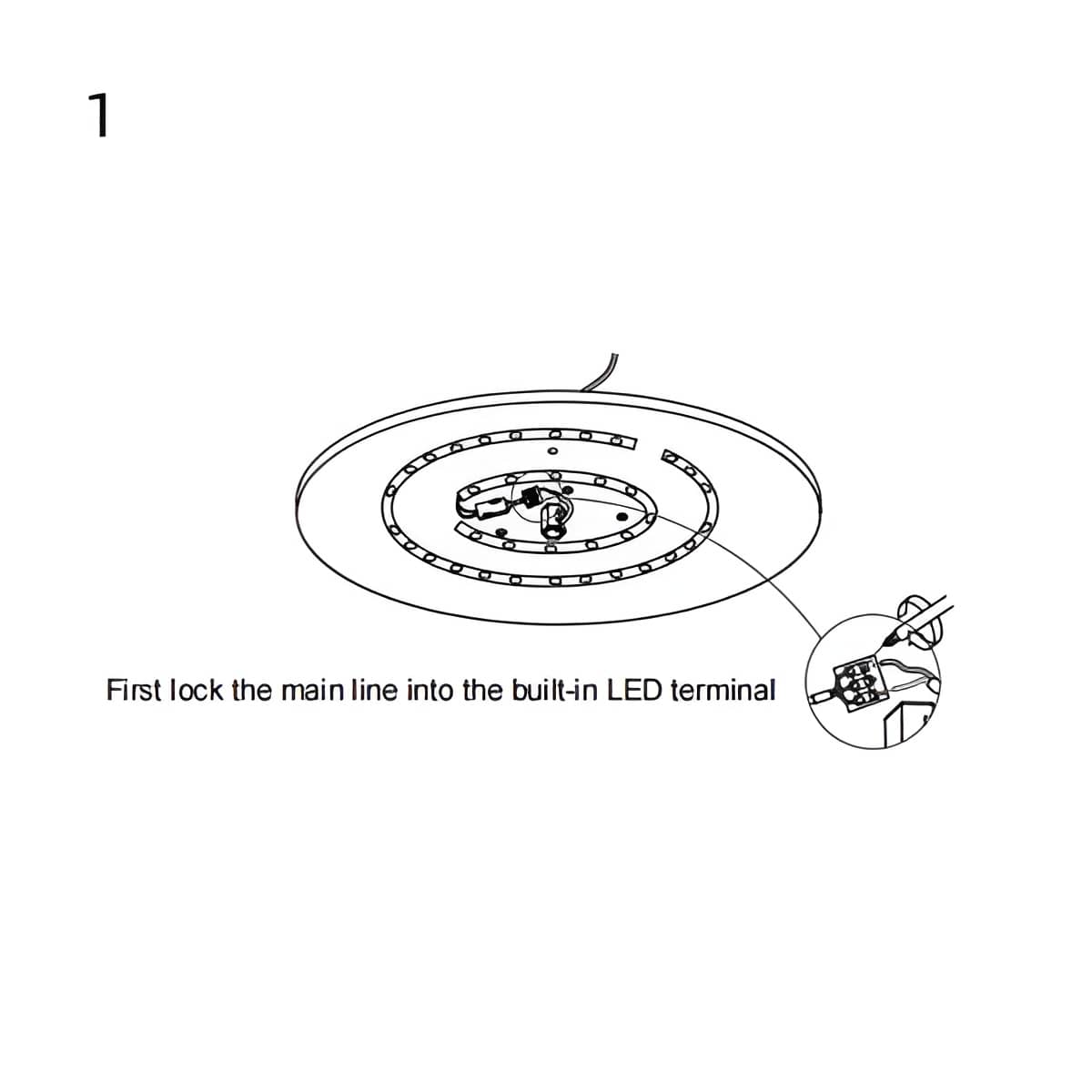 1. Verrouillez le câble principal dans le bornier lumineux intégré.