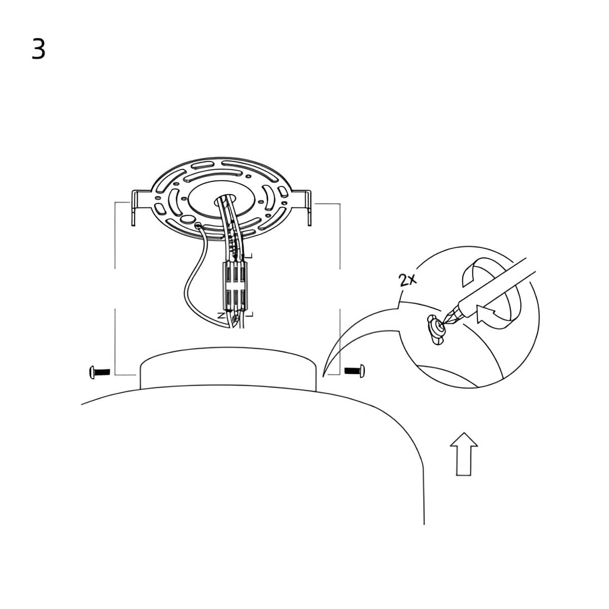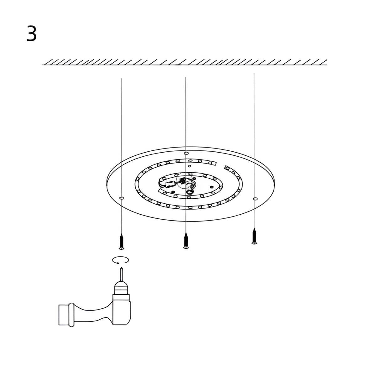 3. Fixez le corps de la lampe au plafond à l'aide de vis.