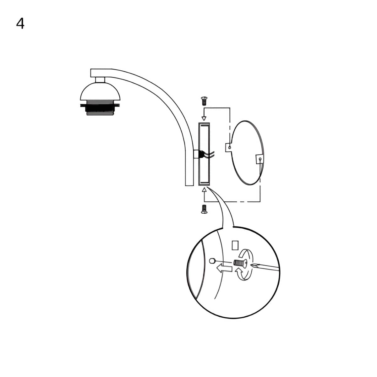4. Utilisez les vis latérales pour fixer le corps de la lampe au support.
