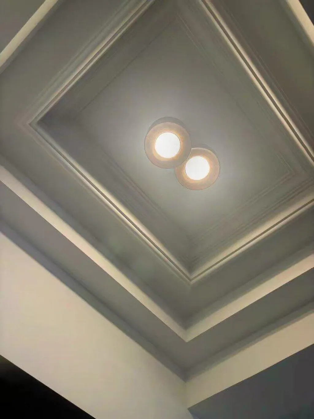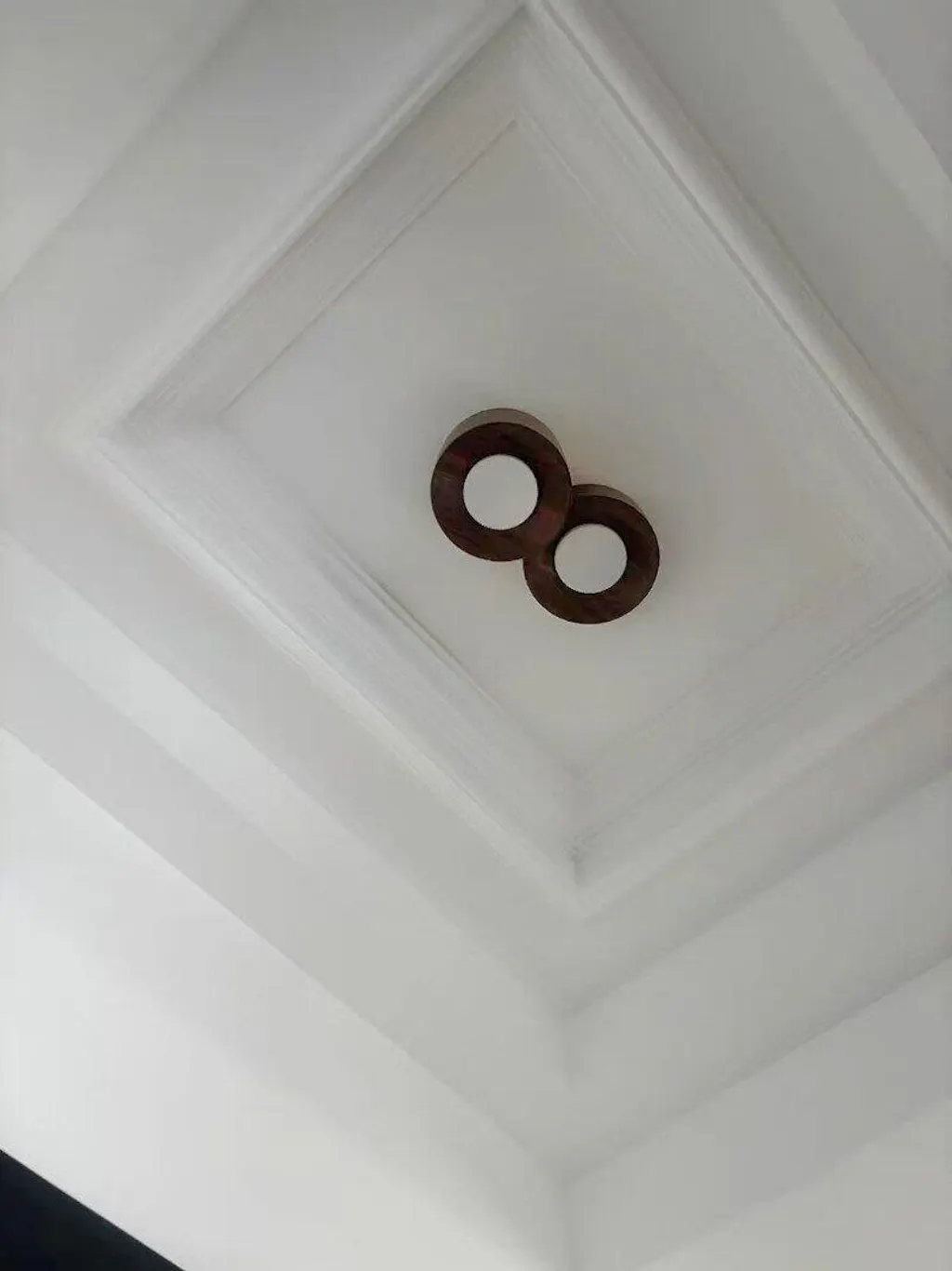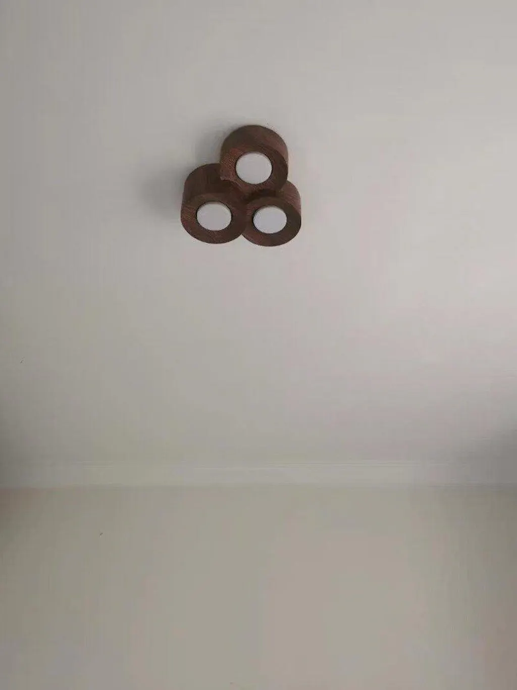 Ce plafonnier couloir entrée présente un design sculptural composé d'une multitude de formes cylindriques arrondies qui s'intègrent harmonieusement les unes aux autres, créant une silhouette fluide et organique. La finition en résine à grain de bois chaleureux confère au plafonnier marron un aspect naturel mais contemporain, tandis que les ouvertures circulaires à la base sont équipées de diffuseurs blancs qui fournissent un éclairage doux et uniforme. Sa structure compacte multicylindre fait de ce plafonnier simple un choix élégant pour les couloirs, les entrées ou les petites pièces, apportant à la fois fonctionnalité et élégance artistique au plafond.